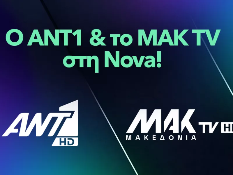 Από σήμερα όλοι οι συνδρομητές της Nova θα απολαμβάνουν το αγαπημένο πρόγραμμα του ANT1 σε ανάλυση HD (στη θέση 8 μέσω Internet με δυνατότητα catch-up 7 ημερών και στη θέση 108 μέσω δορυφόρου) και του MAK TV σε ανάλυση HD (στη θέση 12 μέσω Internet με δυνατότητα catch-up 7 ημερών και 112 μέσω δορυφόρου) όποτε εκείνοι θέλουν και όπου και αν βρίσκονται.
