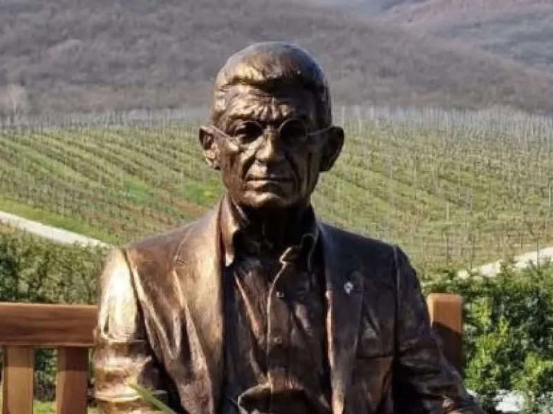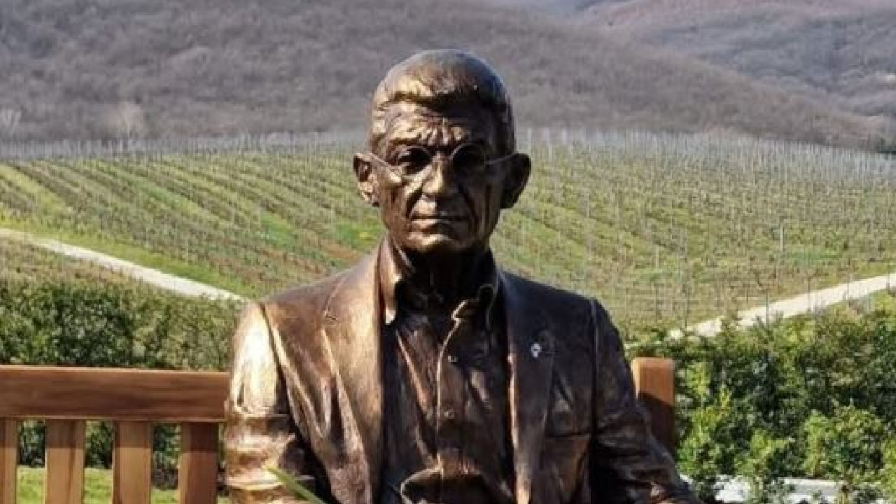 Στα αμπέλια του στο κτήμα της Νάουσας «επέστρεψε» ο Γιάννης Μπουτάρης. Η μορφή του -σε γλυπτό φυσικού μεγέθους κατασκευασμένο από ορείχαλκο- καθισμένη σε ένα παγκάκι θα καλωσορίζει εφεξής τους επισκέπτες του κτήματος.