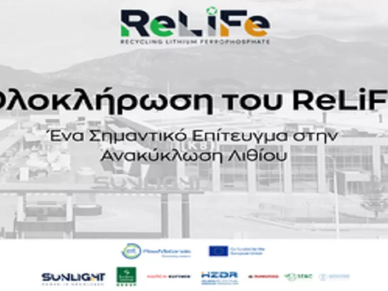 Την ολοκλήρωση του τριετούς ευρωπαϊκού έργου ReLiFe® ανακοίνωσε η Sunlight Group, μέλος του Ομίλου Olympia. Το έργο σχεδιάστηκε, αναπτύχθηκε και τέθηκε σε λειτουργία αποκλειστικά από την ομάδα Έρευνας και Ανάπτυξης (R&D) της Sunlight, με τη συγχρηματοδότηση του EIT RawMaterials, μιας ευρωπαϊκής πρωτοβουλίας που προωθεί την καινοτομία και την ανταγωνιστικότητα στον τομέα των πρώτων υλών και τη στρατηγική υποστήριξη της Ευρωπαϊκής Ένωσης.