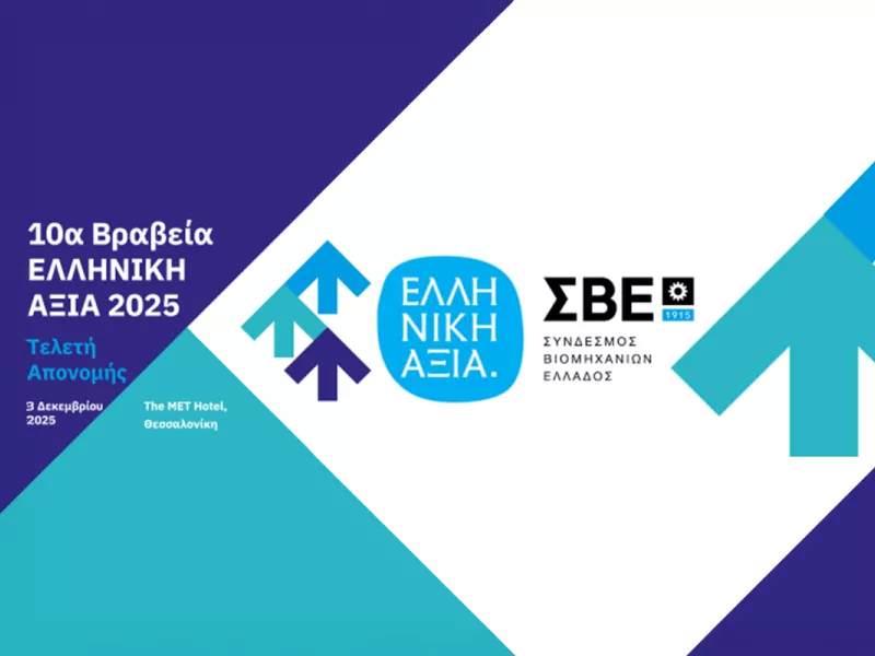 Τα Βραβεία «ΕΛΛΗΝΙΚΗ ΑΞΙΑ 2025» πραγματοποιούνται με τη στήριξη Φορέων και Εταιρειών, σηματοδοτώντας τη δέσμευση του ΣΒΕ για την ισχυροποίηση της βιομηχανίας της χώρας, στο πλαίσιο της περιφερειακής σύγκλισης και ανάπτυξης της εθνικής οικονομίας.