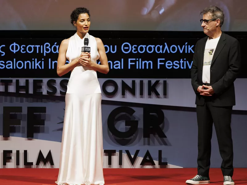 - Κεντρική φωτογραφία: Η ηθοποιός Ίντια Μούρ, μιλάει παρουσία του κριτικού κινηματογράφου και Διευθυντή του ΦΚΘ Ορέστη Ανδρεαδάκη, στην τελετή έναρξης του 66ου Φεστιβάλ Κινηματογράφου Θεσσαλονίκης, στον κινηματογράφο Ολύμπιον, την Πέμπτη 30 Οκτωβρίου 2025.
