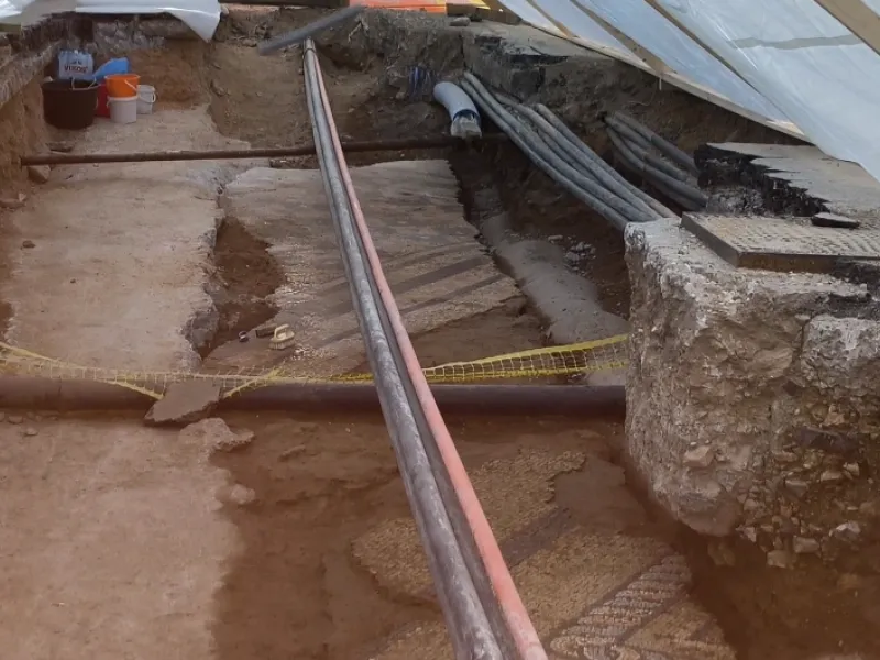Κατά τη διάρκεια των εργασιών που πραγματοποιούνται με σκοπό την ανάπλαση του δρόμου, αποκαλύφθηκε τυχαία κάτω από το οδόστρωμα ένα αρχαίο ψηφιδωτό. Πρόκειται για μία αρκετά μεγάλη επιφάνεια, η οποία παρά το πέρας του χρόνου σε αρκετά τμήματά της παραμένει αναλλοίωτη.