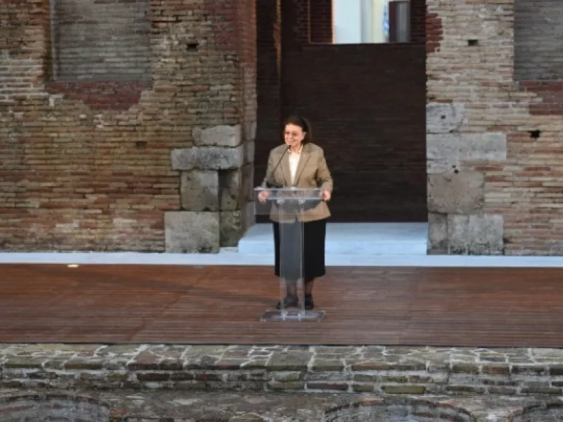 «Σήμερα», όπως ανέφερε χαρακτηριστικά η υπουργός Πολιτισμού, «φθάσαμε σε αυτό το πολύ όμορφο και ωραίο αποτέλεσμα», συμπληρώνοντας: «Είναι όμορφο, γιατί ικανοποιεί την αισθητική μας και είναι ωραίο, γιατί ωρίμασε μελετητικά και αποκαταστάθηκε».