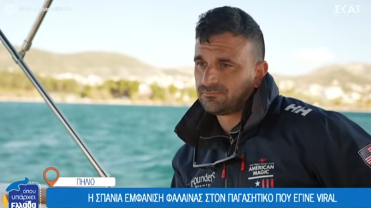 Ερασιτέχνες ψαράδες της περιοχής ήρθαν σε απόσταση αναπνοής από το θηλαστικό και κατέγραψαν viral βίντεο που δείχνει το μέγεθος του ζώου δίπλα στη βάρκα τους. Το «Όπου Υπάρχει Ελλάδα» συνάντησε έναν από τους ψαράδες, που μίλησε για την εμπειρία του.
