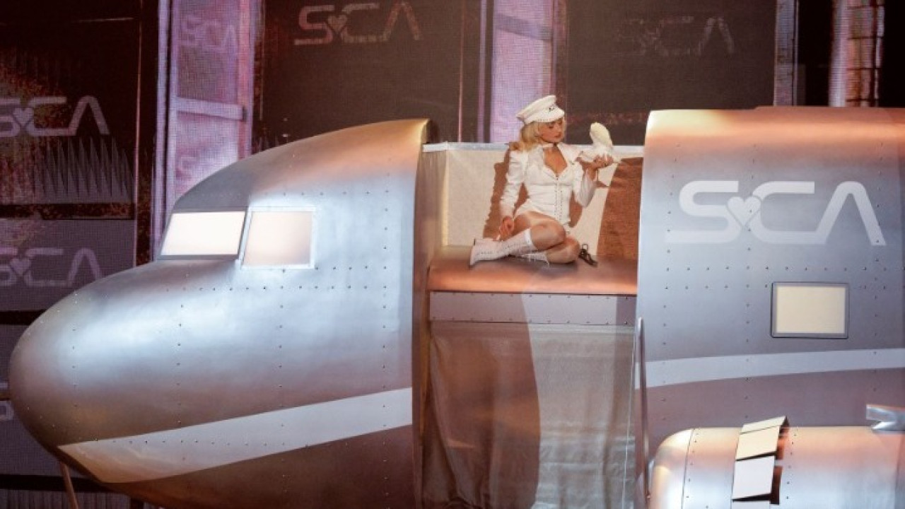 Η διάσημη τραγουδίστρια ανέβηκε στη σκηνή της Crypto.com Arena στο Λος 'Αντζελες το βράδυ της Κυριακής, παρουσιάζοντας το τραγούδι της «Manchild» μέσα σε ένα περίτεχνο σκηνικό που θύμιζε αεροδρόμιο. Κατά τη διάρκεια της εμφάνισης έβγαλε ένα λευκό περιστέρι μέσα από ένα καπέλο μάγου ενώ στο κλείσιμο της ερμηνείας της, κρατούσε το πουλί στο χέρι της κοιτώντας το κοινό.