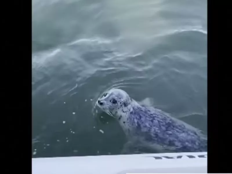 Με τον τηλεφακό της διέκρινε παράλληλα μια φώκια που, απεγνωσμένη, προσπαθούσε να τους ξεφύγει και κατέγραψε τη στιγμή που το ζώο, καταφέρνοντας να τις ξεγελάσει επιχειρεί να σκαρφαλώσει επάνω στο σκάφος στο οποίο επέβαινε η φωτογράφος και η ομάδα της.