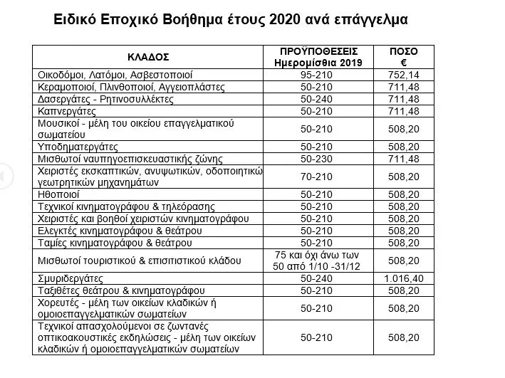 Δικαιούχοι είναι εργαζόμενοι ασφαλισμένοι στον Ηλεκτρονικό Εθνικό Φορέα Κοινωνικής Ασφάλισης (e-ΕΦΚΑ) που ασκούν ένα από τα παρακάτω επαγγέλματα: οικοδόμου, λατόμου, ασβεστοποιού, κεραμοποιού, πλινθοποιού, αγγειοπλάστη, δασεργάτη, ρητινοσυλλέκτη, καπνεργάτη, μουσικού-μέλους του οικείου επαγγελματικού σωματείου, υποδηματεργάτη, μισθωτού ναυπηγοεπισκευαστικής ζώνης, χειριστή εκσκαπτικών, ανυψωτικών, οδοποιητικών, γεωτρητικών μηχανημάτων, ηθοποιού, τεχνικού κινηματογράφου και τηλεόρασης, χειριστή και βοηθού χειριστή κινηματογράφου, ελεγκτή κινηματογράφου και θεάτρου, ταμία κινηματογράφου και θεάτρου, μισθωτού τουριστικού και επισιτιστικού κλάδου, σμυριδεργάτη, το επάγγελμα του ταξιθέτου θεάτρου- κινηματογράφου, του χορευτή-μέλους των οικείων κλαδικών ή ομοιοεπαγγελματικών σωματείων, καθώς και του τεχνικού απασχολούμενου σε ζωντανές οπτικοακουστικές εκδηλώσεις-μέλους των οικείων κλαδικών ή ομοιοεπαγγελματικών σωματείων.