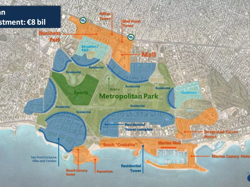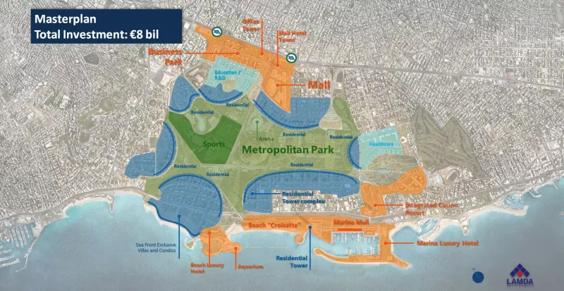 Η επένδυση στο Ελληνικό, θα αγγίξει τα 8 δισ. ευρώ, σε μια έκταση που είναι το ένα τρίτο της περιοχής του Ελληνικού, δύο φορές μεγαλύτερη του πάρκου του Λονδίνου, τρεις φορές του Μονακό και 25 φορές του Εθνικού Κήπου της Αθήνας και “θα βάλει αλλού τον πήχη”, όπως είπε ο Οδυσσέας Αθανασίου.