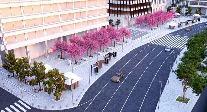 Οι υπάρχουσες πιλοτικές παρεμβάσεις στην κάτω πλευρά της πλατείας Συντάγματος θα δώσουν πλέον τη θέση τους στα οριστικά έργα, τα οποία προβλέπουν διαπλάτυνση των πεζοδρομίων της Φιλελλήνων, μια νέα πρόσοψη του πεζόδρομου της Ερμού αλλά και πλούσια φύτευση μεγάλων, ψηλών δέντρων και πράσινου.