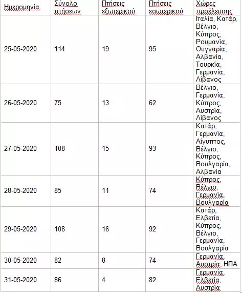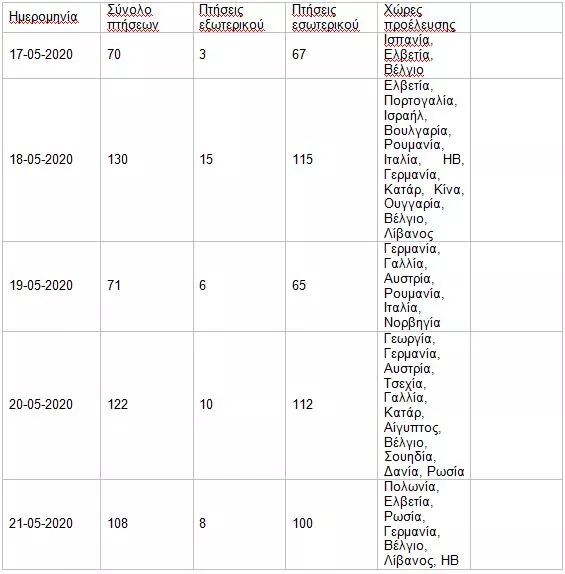 Πτήσεις εξωτερικού και εσωτερικού από 17-5-2020 έως 21-5-2020