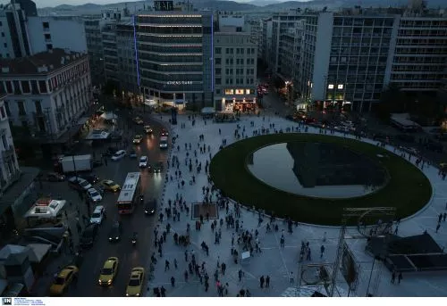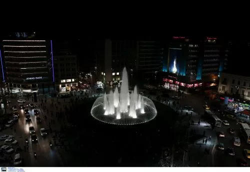 Παραδόθηκε στους πολίτες η νέα πλατεία στην Ομόνοια με τον κόσμο να συρρέει για να δει από κοντά το φωταγωγημένο συντριβάνι.