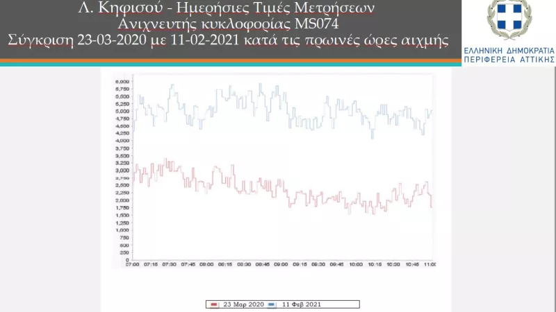 Επιπλέον, να σημειωθεί ότι η κυκλοφορία σήμερα 11-2-2021 συγκριτικά με την χθεσινή ημέρα 10-02-2021 παρουσιάζει μείωση σε ποσοστό 7%.