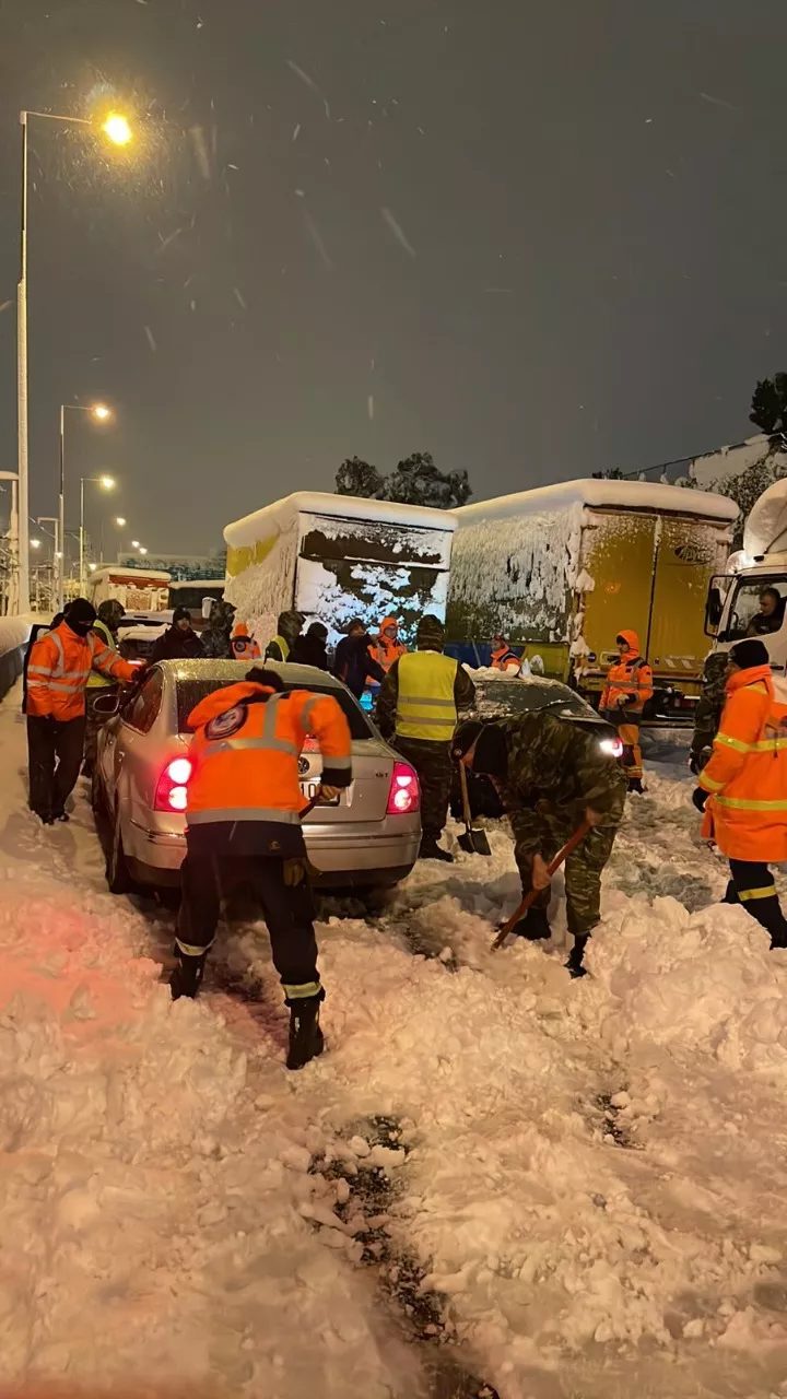 Ολονύχτια κινητοποίηση του στρατού και των ειδικών δυνάμεων στην Αττική Οδό για τον απεγκλωβισμό των οδηγών, οι οποίοι παραμένουν εγκλωβισμένοι από χθες το πρωί κι ενώ συνεχίζεται η έντονη χιονόπτωση.
