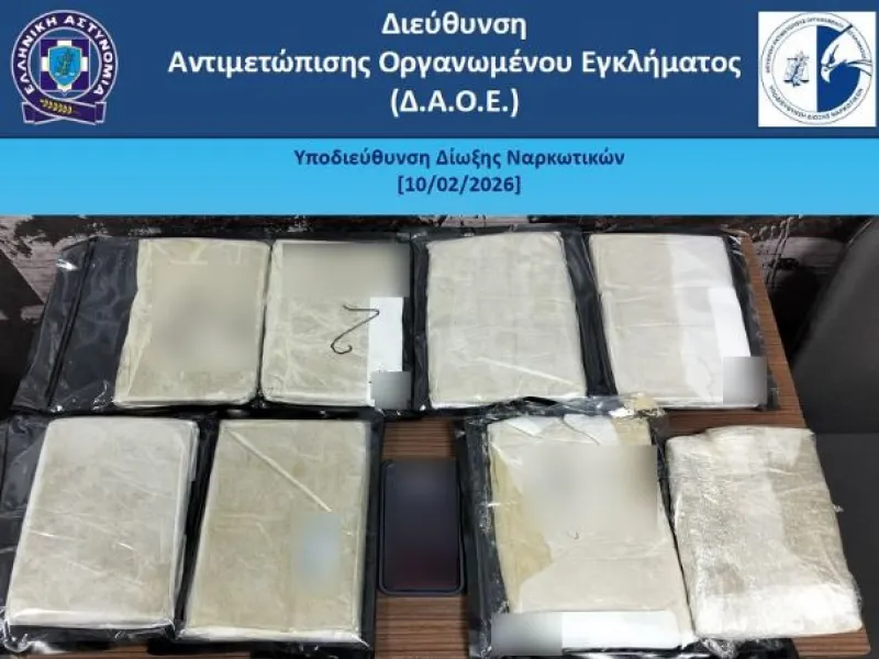 Από την επακόλουθη έρευνα στην αποσκευή του, κατελήφθη να έχει αποκρύψει εντός αυτής 8 κιλά και 200 γραμμάρια κατεργασμένης κάνναβης (σοκολάτα), με σκοπό την περαιτέρω διακίνηση, ενώ βρέθηκε και κατασχέθηκε επιπλέον ένα κινητό τηλέφωνο.