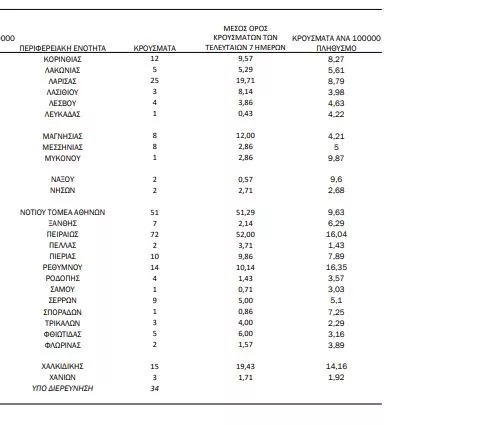 Τέλος, 34 κρούσματα είναι υπό διερεύνηση