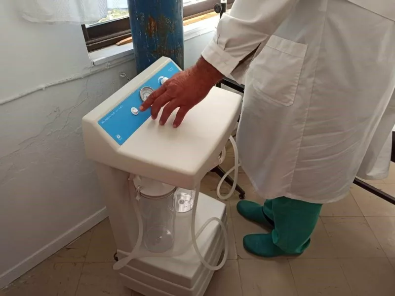 Υπεύθυνος Κέντρου Υγείας Δικαίων, το μηχάνημα τροχήλατης αναρρόφησης που δόθηκε από το Μαζί για το Παιδί.