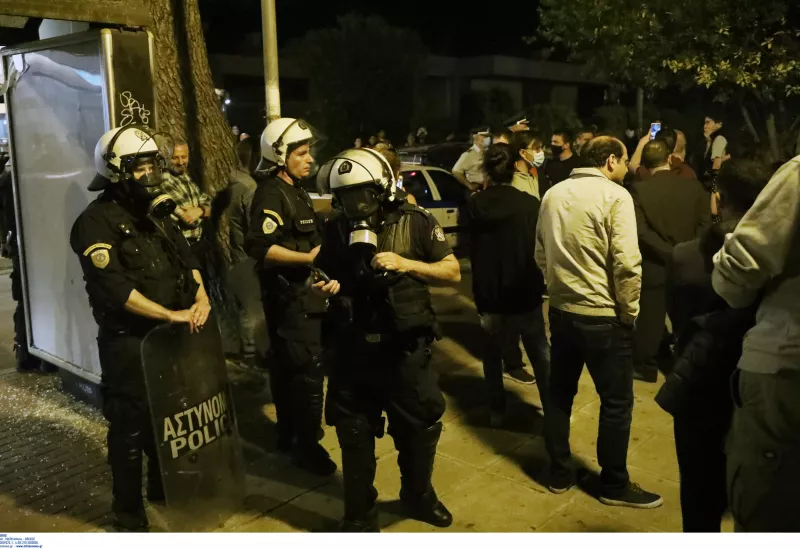 Περίπου 100 άτομα βρίσκονται ωστόσο στην πλατεία και φωνάζουν συνθήματα κατά της αστυνομίας, περιπολικό της οποίας τους καλεί να αποχωρήσουν για λόγους δημόσιας υγείας, για την αποφυγή διασποράς της νόσου του κορωνοϊού. Στην περιοχή παραμένουν αστυνομικές δυνάμεις. Στην περιοχή όμως μαζεύονται και άλλα άτομα που διαφωνούν με την απόφαση της κυβέρνησης.