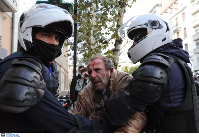 Φωτογραφία τραυματισμένου διαδηλωτή δημοσίευσε και το πρακτορείο Intime News.
