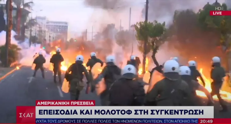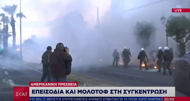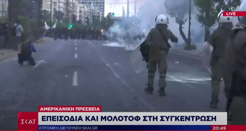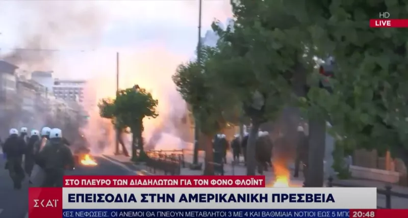 Επεισόδια ξέσπασαν λίγο μετά τις 20.30 της Τετάρτης έξω από το κτίριο της Αμερικανικής πρεσβείας στη Βασιλίσσης Σοφίας, στο περιθώριο διαδήλωσης για την δολοφονία του Τζορτζ Φλόιντ.