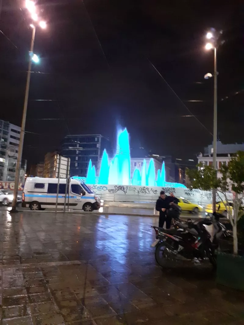 Νωρίτερα, σήμερα, Πέμπτη δοκιμάστηκε για πρώτη φορά το κεντρικό συντριβάνι της πλατείας.