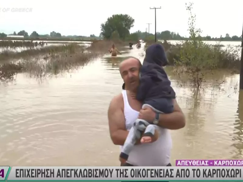 Αν και άνδρες της ΕΜΑΚ με πλωτά μέσα επιχειρούσαν για ώρες για τον απεγκλωβισμό, συγγενής της οικογένειας, αγνοώντας την υψηλή στάθμη του νερού, πλησίασε στο ποιμννιοστάσιο και πήρε το παιδάκι από τη μητέρα του προκειμένου να το μεταφέρει σε ασφαλές σημείο.