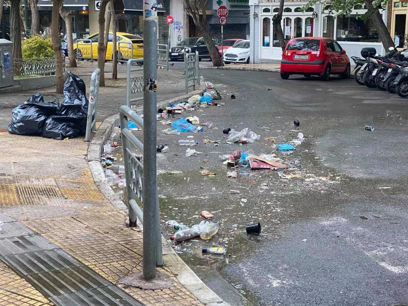 Σημειώνεται ότι και την Κυριακή το πρωί, υπάλληλοι του δήμου και πολίτες αντίκρισαν τις ίδιες εικόνες στην πλατεία Αγίου Γεωργίου με ένα "χαλί" από απορρίμματα...