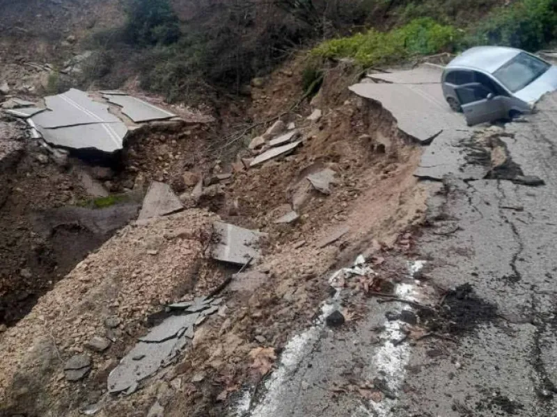 - Στην περιοχή των Τζουμέρκων, το οδόστρωμα της επαρχιακής οδού Γεφυριού Πλάκας-Άγναντων-Πραμαντών υποχώρησε σε μήκος περίπου 70 μέτρων λόγω έντονων βροχοπτώσεων.