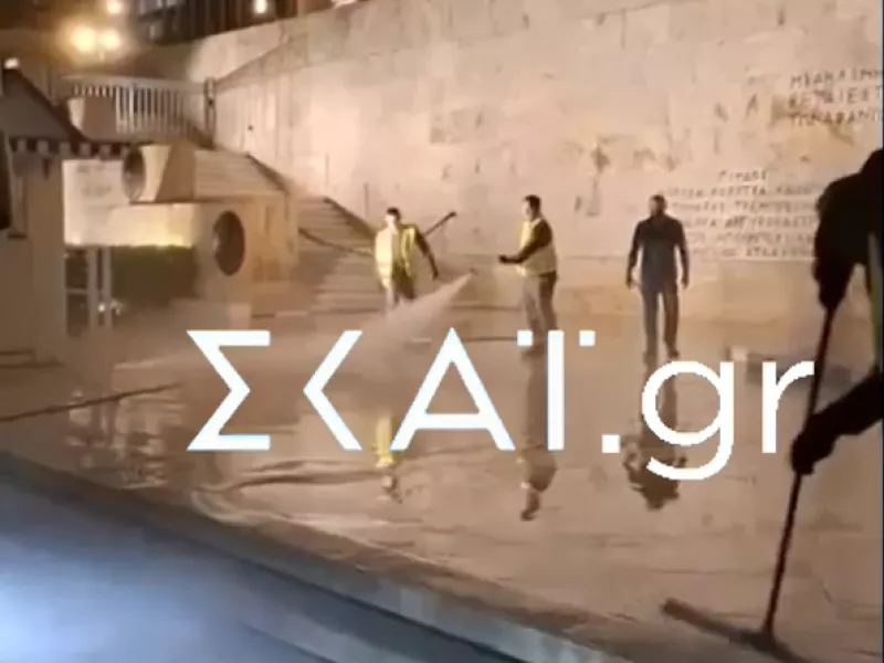 Όπως φαίνεται και στο βίντεο του skai.gr, η εταιρεία ENSER καθάρισε τον χώρο γύρω από το μνημείο τα ξημερώματα της 27ης Οκτωβρίου.