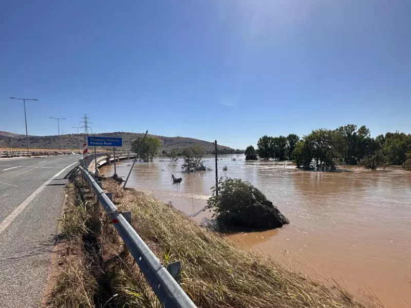 Κλειστή παραμένει για 5η μέρα η Εθνική Οδός Τρικάλων - Λάρισας καθώς μεγάλο τμήμα της βυθίστηκε τις προηγούμενες μέρες κάτω από το νερό.