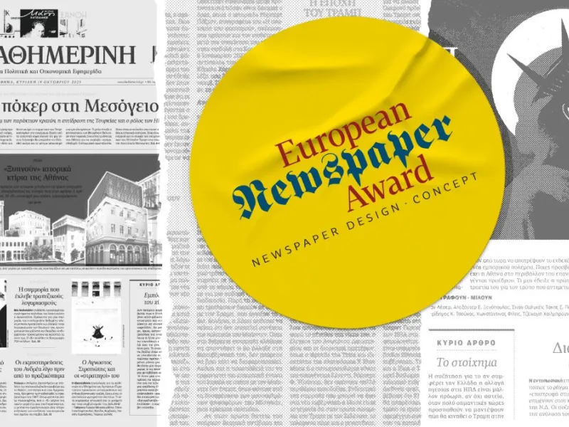 Τη βράβευση του Κυριακάτικου φύλλου της Καθημερινής στην κατηγορία «Εβδομαδιαία Εφημερίδα» ανακοίνωσαν σήμερα στη Φρανκφούρτη οι διοργανωτές των 27ων Ευρωπαϊκών Βραβείων Εφημερίδων. Στον φετινό διαγωνισμό, που διεξάγεται από το 1999, συμμετείχαν εφημερίδες από 22 χώρες με 3.000 υποψηφιότητες σε 20 κατηγορίες.
