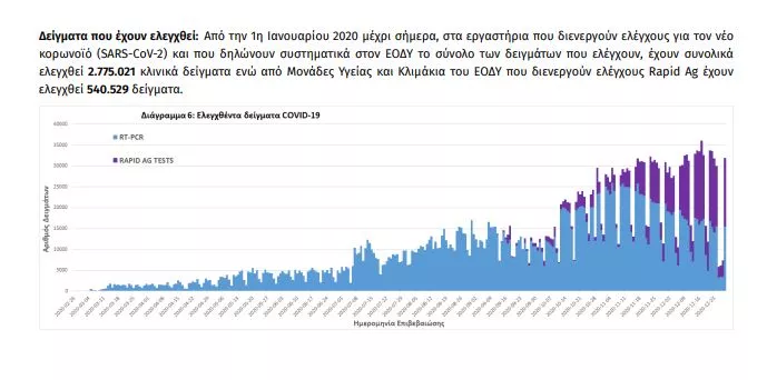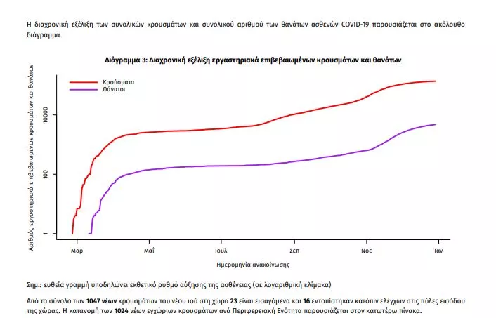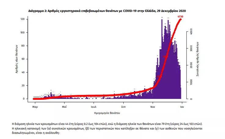 Τέλος, έχουμε 58 ακόμα καταγεγραμμένους θανάτους και 4730 θανάτους συνολικά στη χώρα. 1923 (40.7%) γυναίκες και οι υπόλοιποι άνδρες. Η διάμεση ηλικία των θανόντων συμπολιτών μας ήταν τα 79 έτη και το 95.5% είχε κάποιο υποκείμενο νόσημα ή/και ηλικία 70 ετών και άνω.