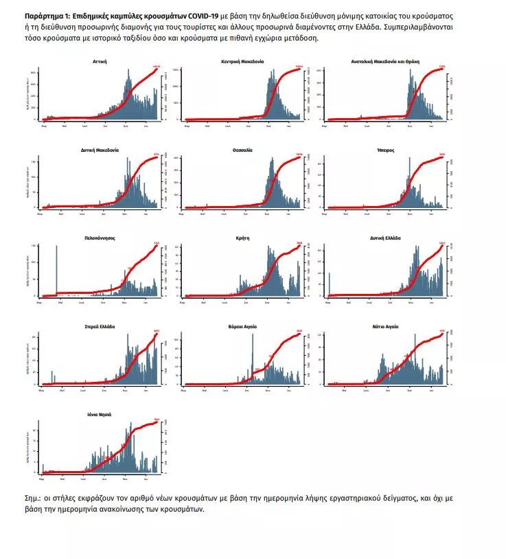 Ο χάρτης αποτυπώνει τη γεωγραφική κατανομή των συνολικών κρουσμάτων COVID-19 (από την αρχή της επιδημίας) ανά Περιφερειακή Ενότητα της χώρας, με βάση την δηλωθείσα διεύθυνση μόνιμης κατοικίας του ασθενούς, ή τη διεύθυνση προσωρινής διαμονής για τους τουρίστες και άλλους προσωρινά διαμένοντες στην Ελλάδα. Συμπεριλαμβάνονται τόσο κρούσματα με ιστορικό ταξιδίου (“εισαγόμενα”) όσο και κρούσματα με πιθανή εγχώρια μετάδοση.