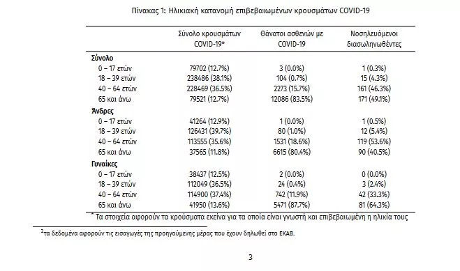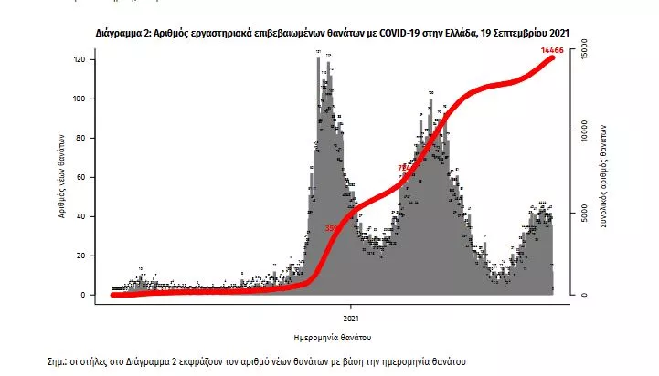 Οι νέοι θάνατοι ασθενών με COVID-19 είναι 33, ενώ από την έναρξη της επιδημίας έχουν καταγραφεί συνολικά 14.466 θάνατοι. Το 95.4% είχε υποκείμενο νόσημα ή/και ηλικία 70 ετών και άνω.