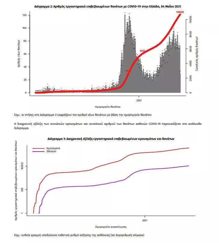 Οι νέοι θάνατοι ασθενών με COVID-19 είναι 81, ενώ από την έναρξη της επιδημίας έχουν καταγραφεί συνολικά 10.668 θάνατοι. Το 95.4% είχε υποκείμενο νόσημα ή/και ηλικία 70 ετών και άνω.