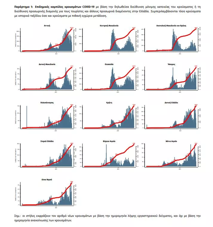Με βάση τα επιβεβαιωμένα κρούσματα των τελευταίων 7 ημερών, 33 θεωρούνται σχετιζόμενα με ταξίδι από το εξωτερικό και 2.328 είναι σχετιζόμενα με ήδη γνωστό κρούσμα.