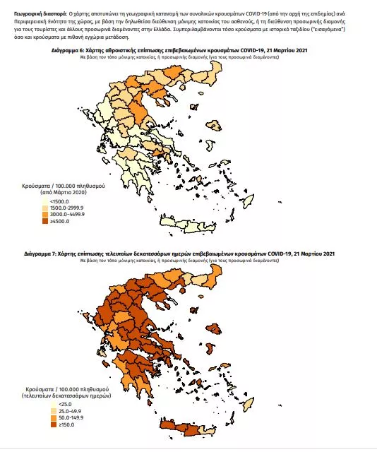 Ο αριθμός των ασθενών που νοσηλεύονται διασωληνωμένοι είναι 674 (65.9% άνδρες). Η διάμεση ηλικία τους είναι 68 έτη. To 81.0% έχει υποκείμενο νόσημα ή/και ηλικία 70 ετών και άνω. Από την αρχή της πανδημίας έχουν εξέλθει από τις ΜΕΘ 1.577 ασθενείς. Οι εισαγωγές νέων ασθενών Covid-19 στα νοσοκομεία της επικράτειας είναι 512 (ημερήσια μεταβολή -0.19%).