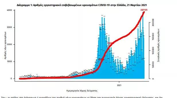 Ο συνολικός αριθμός των κρουσμάτων ανέρχεται σε 237.125 (ημερήσια μεταβολή +0.6%), εκ των οποίων 51.5% άνδρες. Με βάση τα επιβεβαιωμένα κρούσματα των τελευταίων 7 ημερών, 68 θεωρούνται σχετιζόμενα με ταξίδι από το εξωτερικό και 2.757 είναι σχετιζόμενα με ήδη γνωστό κρούσμα.