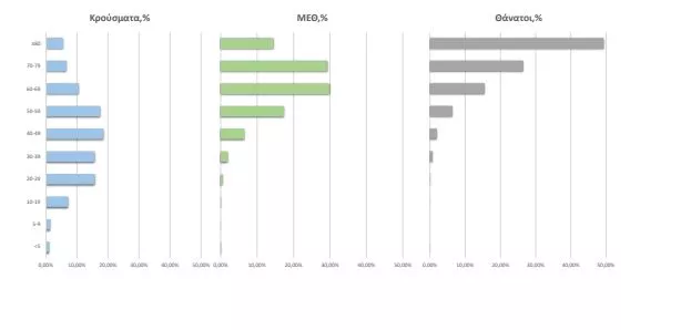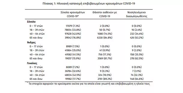 Η διάμεση ηλικία των κρουσμάτων είναι 44 έτη (εύρος 0.2 έως 105 έτη), ενώ η διάμεση ηλικία των θανόντων είναι 79 έτη (εύρος 0 έως 103 έτη).