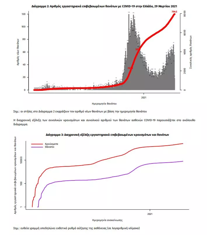 Οι νέοι θάνατοι ασθενών με COVID-19 είναι 65, ενώ από την έναρξη της επιδημίας έχουν καταγραφεί συνολικά 7.945 θάνατοι. Το 95,7% είχε υποκείμενο νόσημα ή/και ηλικία 70 ετών και άνω.