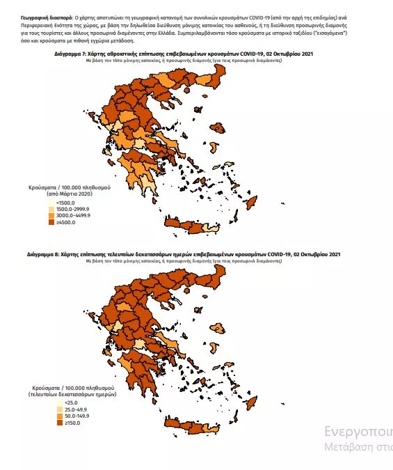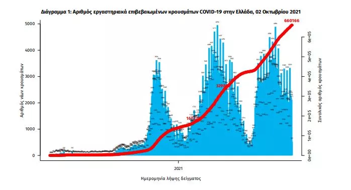 Ο συνολικός αριθμός των κρουσμάτων ανέρχεται σε 660.166 (ημερήσια μεταβολή +0.3%), εκ των οποίων 50.9% άνδρες. Με βάση τα επιβεβαιωμένα κρούσματα των τελευταίων 7 ημερών, 77 θεωρούνται σχετιζόμενα με ταξίδι από το εξωτερικό και 3.183 είναι σχετιζόμενα με ήδη γνωστό κρούσμα.
