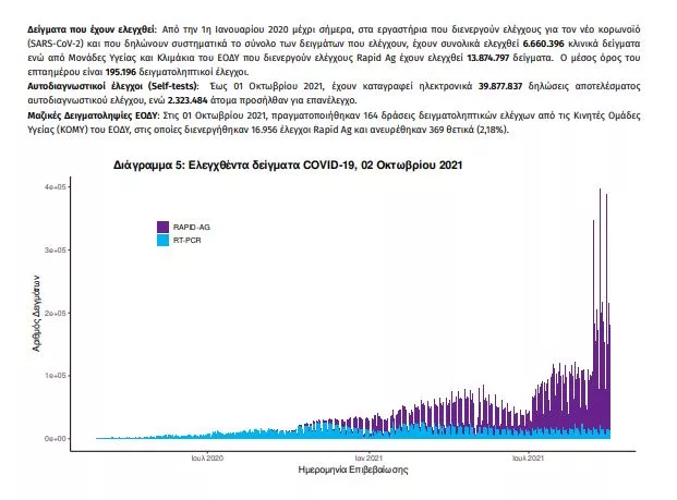 Σήμερα έγιναν, 180.977 τεστ και η θετικότητα υπολογίζεται στο 1,02%.