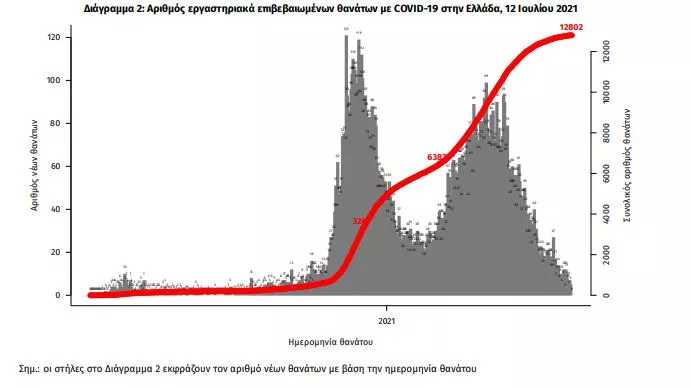 Οι νέοι θάνατοι ασθενών με COVID-19 είναι 10, ενώ από την έναρξη της επιδημίας έχουν καταγραφεί συνολικά 12.802 θάνατοι. Το 95.2% είχε υποκείμενο νόσημα ή/και ηλικία 70 ετών και άνω.