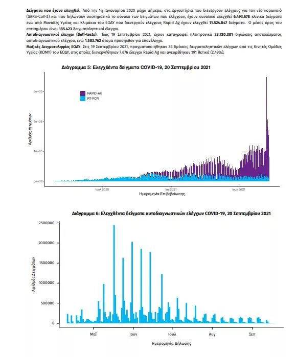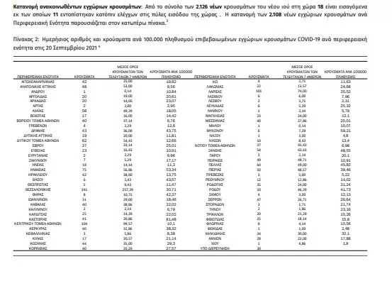 Τα νέα εργαστηριακά επιβεβαιωμένα κρούσματα της νόσου που καταγράφηκαν τις τελευταίες 24 ώρες είναι 2126 σε 80.036 τεστ.