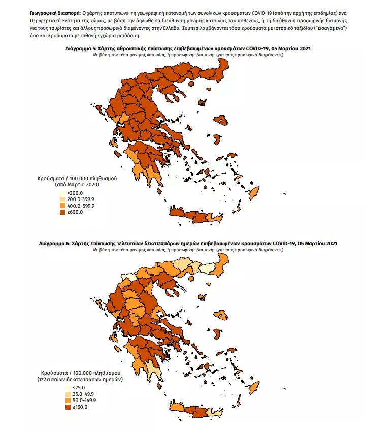 Hλικιακή κατανομή: Η διάμεση ηλικία των κρουσμάτων είναι 44 έτη (εύρος 0.2 έως 105 έτη), ενώ η διάμεση ηλικία των θανόντων είναι 79 έτη