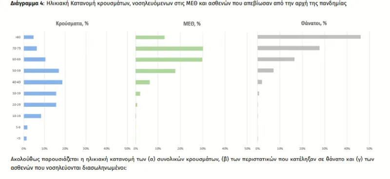 Ο αριθμός των ασθενών που νοσηλεύονται διασωληνωμένοι είναι 296 (64.9% άνδρες). Η διάμεση ηλικία τους είναι 67 έτη. To 84.5% έχει υποκείμενο νόσημα ή/και ηλικία 70 ετών και άνω. Από την αρχή της πανδημίας έχουν εξέλθει από τις ΜΕΘ 2.611 ασθενείς.