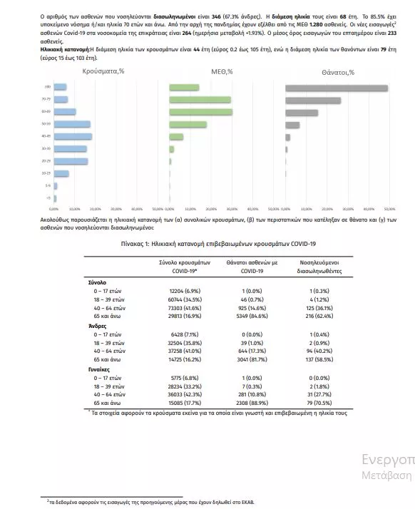 Παράλληλα, σε 346 ανέρχονται οι διασωληνωμένοι ασθενείς στις ΜΕΘ.