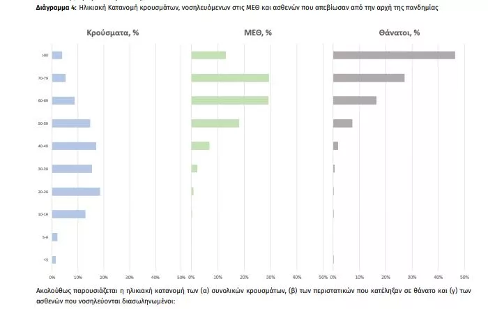 Το 59,9% των διασωληνωμένων είναι άνδρες και η διάμεση ηλικία τους είναι 64 έτη. To 83.4% έχει υποκείμενο νόσημα ή/και ηλικία 70 ετών και άνω.