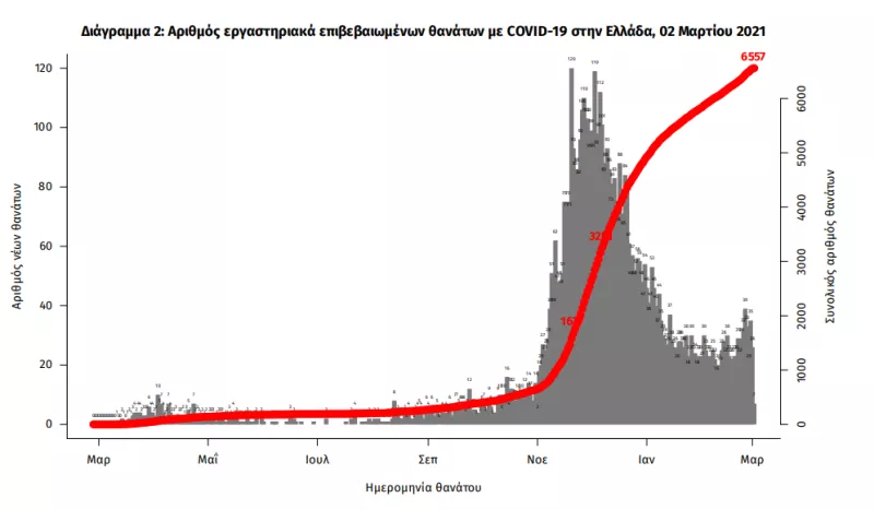 Οι νέοι θάνατοι ασθενών με COVID-19 είναι 23, ενώ από την έναρξη της επιδημίας έχουν καταγραφεί συνολικά 6.557 θάνατοι. Το 95.7% είχε υποκείμενο νόσημα ή/και ηλικία 70 ετών και άνω.