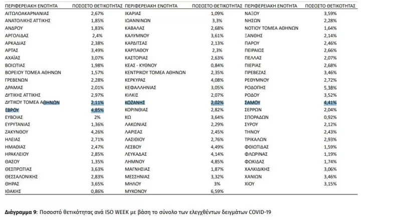 Υψηλά ποσοστά θετικότητας κορωνοιού καταγράφονται σε περιοχές όπως ο Έβρος, η Ροδόπη, η Λέσβος και η Σάμος.