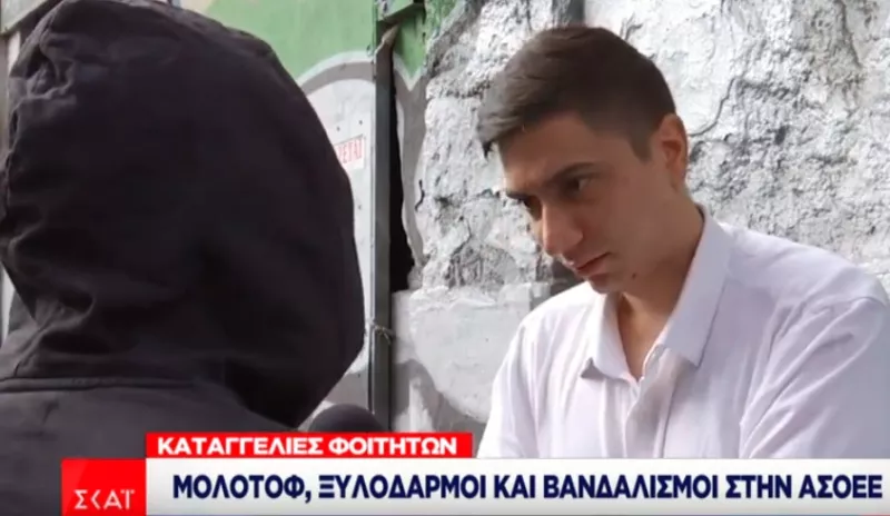 «Καθημερινά βλέπουμε το πανεπιστήμιο να μετατρέπεται σε εμπόλεμη ζώνη… Άτομα του αντιεξουσιαστικού χώρου βγαίνουν μέσα από το ΑΕΙ είτε εκτός και δημιουργούν επεισόδια» σημείωσε ο φοιτητής.